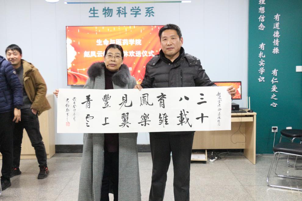 12月29日下午,公司在13号教学楼259会议室举行赵凤云教授荣休仪式。公司党委书记王光坊、经理杨凤堂、党委副书记姜素琼、副经理邓洪宽、副经理赵倩、学术副经理徐佳宁、生物科学系教师参加仪式,仪式由公司党委副书记姜素琼主持。