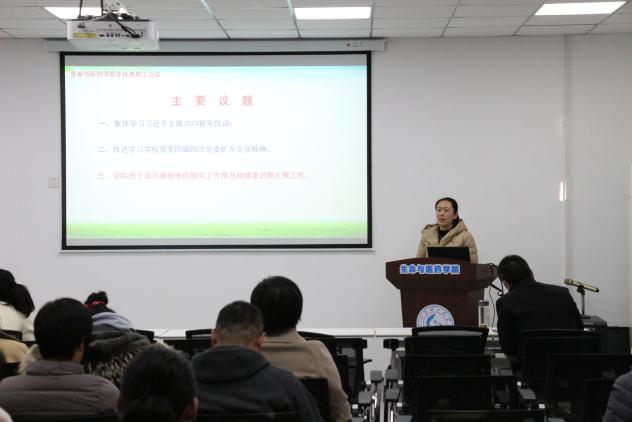 会上,全体教职工集体观看了《国家主席习近平发表二〇二四年新年贺词》视频资料,王光坊结合贺词内容,围绕当下国家经济社会发展形势和公司公司事业发展实际,就扎根各自岗位明确使命任务、抢抓学科专业发展新机遇,向大家提出了明确希望。