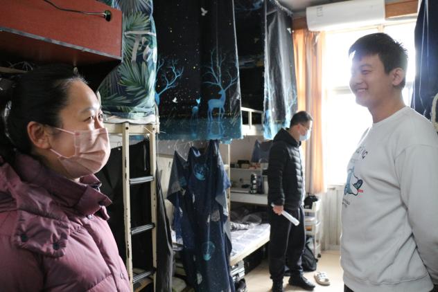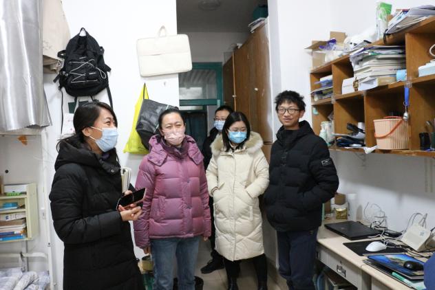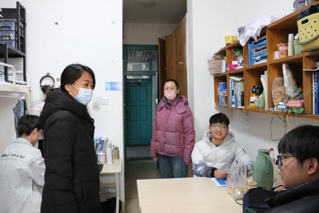 2月29日,全体辅导员在党委副书记姜素琼带领下,挨个走访员工公寓楼,检查宿舍卫生大扫除情况,深入宿舍排查违章电器、电动车充电、劣质插排和饮水机等不合格电器,处置化解消防安全隐患。与同学们亲切交流返校后身心感受、新学期规划安排等事宜,提醒同学们多开窗通风,合理利用宿舍空间规置个人物品,不断改善宿舍环境。走访中还着重对本科毕业生考研、就业等情况进行了跟进,听取了部分毕业生的问题困惑与诉求,并有针对性地进行了现场答疑指导。