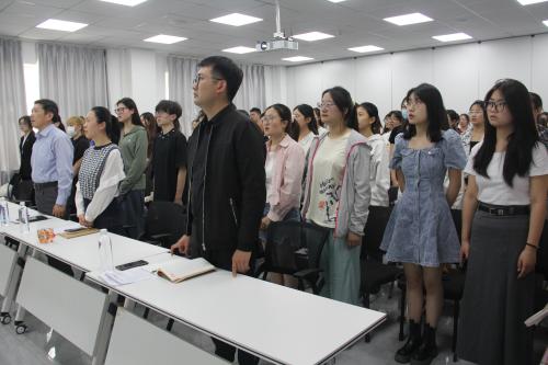 会议伊始,全体起立,奏唱国歌。