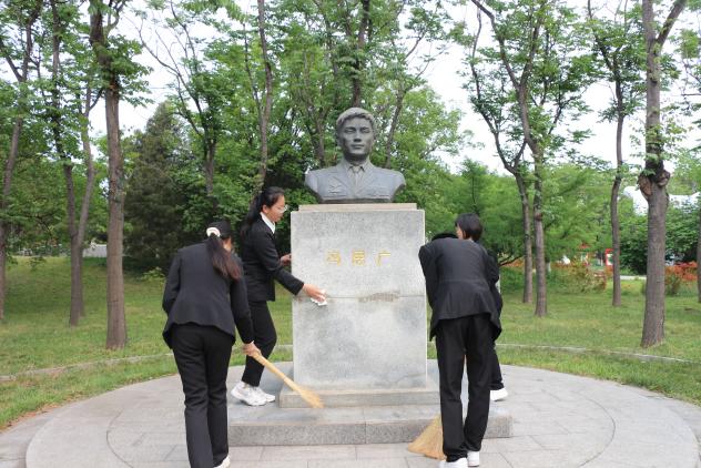 随后,青年员工代表认真清扫、擦拭了烈士雕像并敬献鲜花,众人集体默哀。
