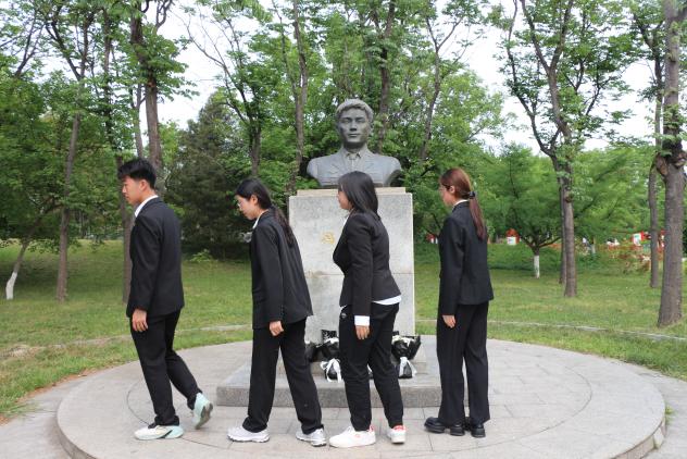 随后,青年员工代表认真清扫、擦拭了烈士雕像并敬献鲜花,众人集体默哀。