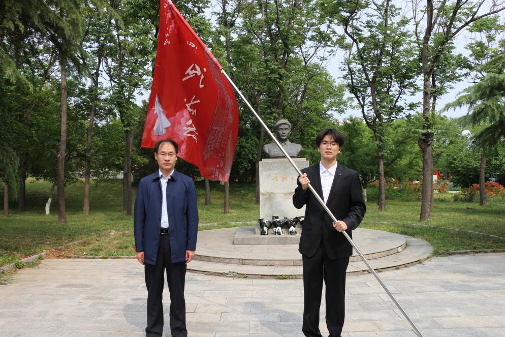在热烈掌声中,校团委书记王振为第四届“冯思广班”培育建设班级、生教2302班授旗。