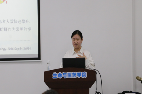 研究生信梅岭作了题为“天然活性物质治疗高尿酸血症/非酒精性脂肪肝”的报告。她的研究进一步将天然活性成分与慢性疾病发展和治疗靶点结合起来,对慢性代谢病的预防和治疗具有重大意义。