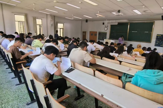 5月26日下午,谈球吧在4号教学楼102室、104室、106室、108室、202室举行2023级第二学期高数期中考试。此次考试由谈球吧员工会学习部举办,员工会部分成员监考,公司2023级全体员工参加。