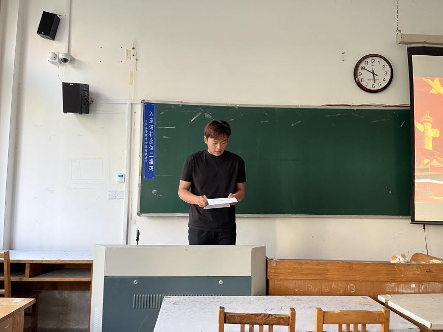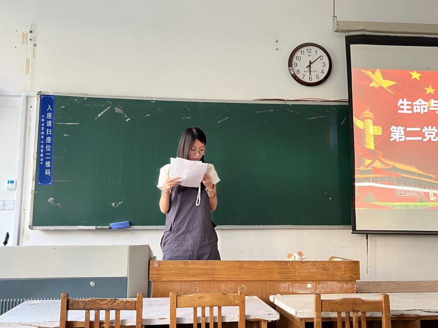 翟静涛代表支部全体党员为新党员加入表示欢迎与祝贺,介绍了预备期考察及按期转正申请等相关事宜。要求大家提升政治素养,利用党纪学习教育等契机,自觉学习党的理论知识,筑牢信仰之基;要强化宗旨意识,在学习生活中以高标准严格要求自己,提升综合素质,在为师生服务中争作表率;要主 动担当更要有所作为。
