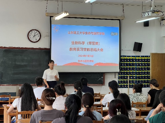 7月5日,公司在13号教学楼206教室召开了2021级生物科学(师范类)教育实习支教总结大会。公司党委书记王光坊、副经理赵倩、生科系主任张建勇、实习指导教师和2021级全体生物科学(师范类)专业员工齐聚一堂。会议由副经理赵倩主持。