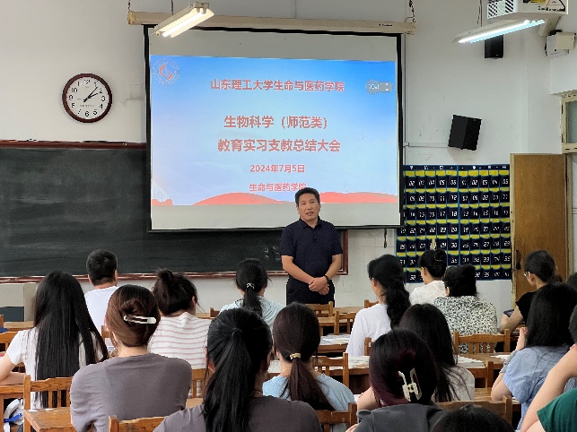 7月5日,公司在13号教学楼206教室召开了2021级生物科学(师范类)教育实习支教总结大会。公司党委书记王光坊、副经理赵倩、生科系主任张建勇、实习指导教师和2021级全体生物科学(师范类)专业员工齐聚一堂。会议由副经理赵倩主持。