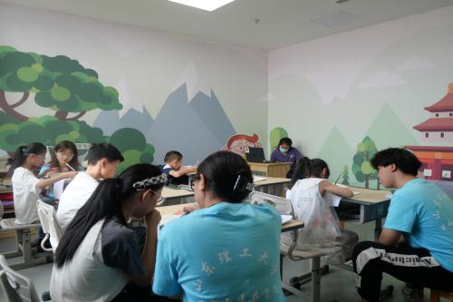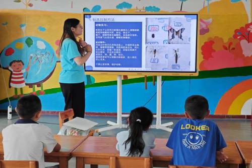 随后,七月蜜蜂宣讲团辅导孩子们学习。陈海涛、李佳逸对福利院内植物进行了相应观察,为相关植物的讲解和标本的制作做了充分准备。