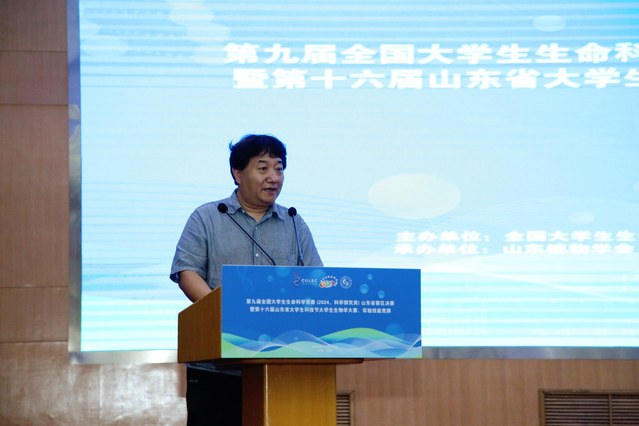 赵遵田教授代表山东植物学会、山东动物学会、山东生态学会、山东微生物学会对大赛顺利举行表示祝贺,勉励青年学子能够用激情活力、聪明才智尽情演绎老员工风采,并祝大家取得好成绩。
