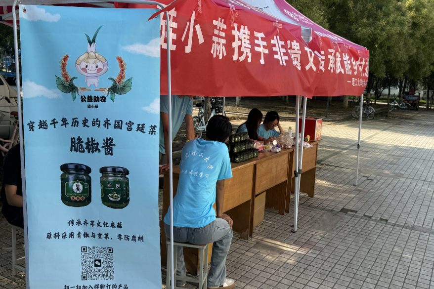为传承齐菜文化底蕴,发扬齐风鲁韵,传播非遗味道,深入落实为农民服务、为百姓谋福利,实现团队社会实践的目的宗旨,7月20日至7月21日,谈球吧硅小蒜科技助农团在谈球吧网页版登录入口(西校区)第三餐厅门口进行助农产品脆椒酱的售卖活动。