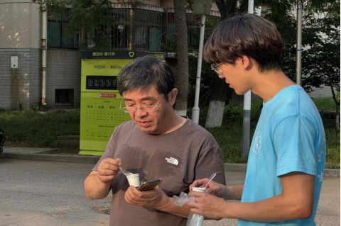 图为路人试吃脆椒酱