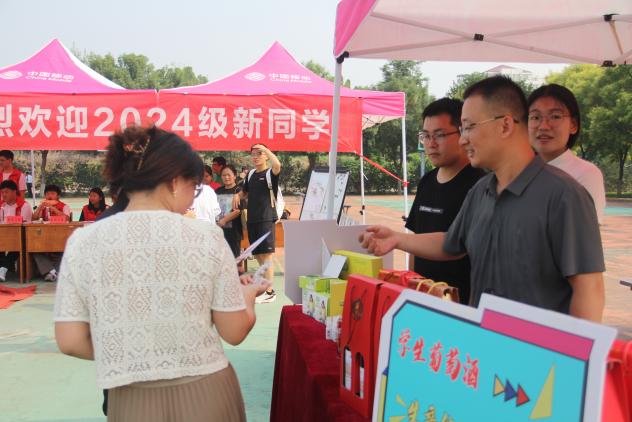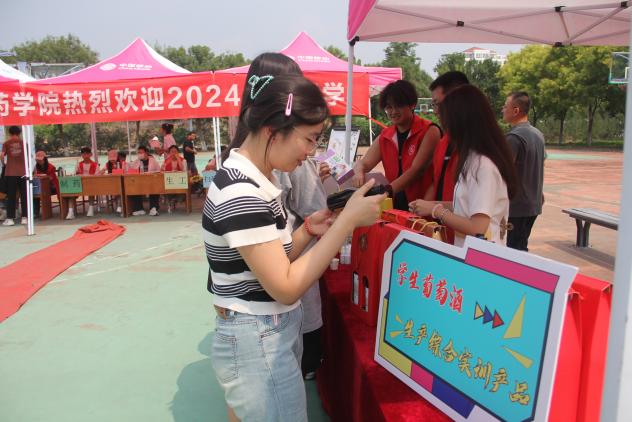 此外,迎新现场由科研成果转化产品、员工红酒综合实训产品和植物标本等组成的专业特色展区,更是成为了一众前来报到的家长与新生的“团宠”。一时间,大家或拍照观摩,或跃跃欲试,走红毯、品红酒、尝山楂、送产品,有品有范儿,有滋有味儿,体验感拉满,让人直呼过瘾。