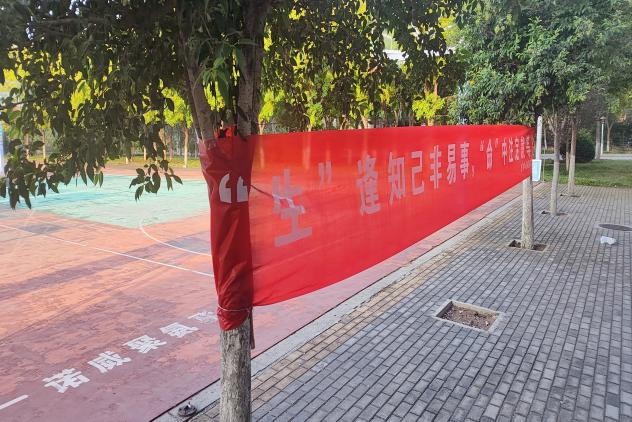 迎新点外,醒目走心的迎新标语同志愿者们热火朝天搬运新生行李的服务场景交相呼应,浓浓暖意,充斥心间。