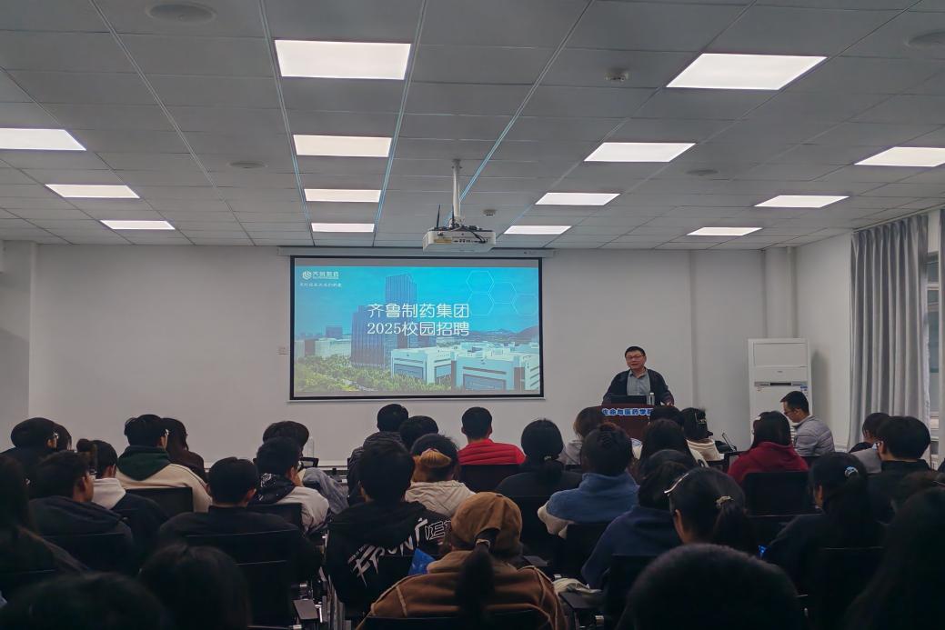 10月22日下午,谈球吧在13号教学楼215室举办齐鲁制药专场招聘宣讲会,2025届部分本科生、研究生参加。宣讲会由辅导员李超主持。