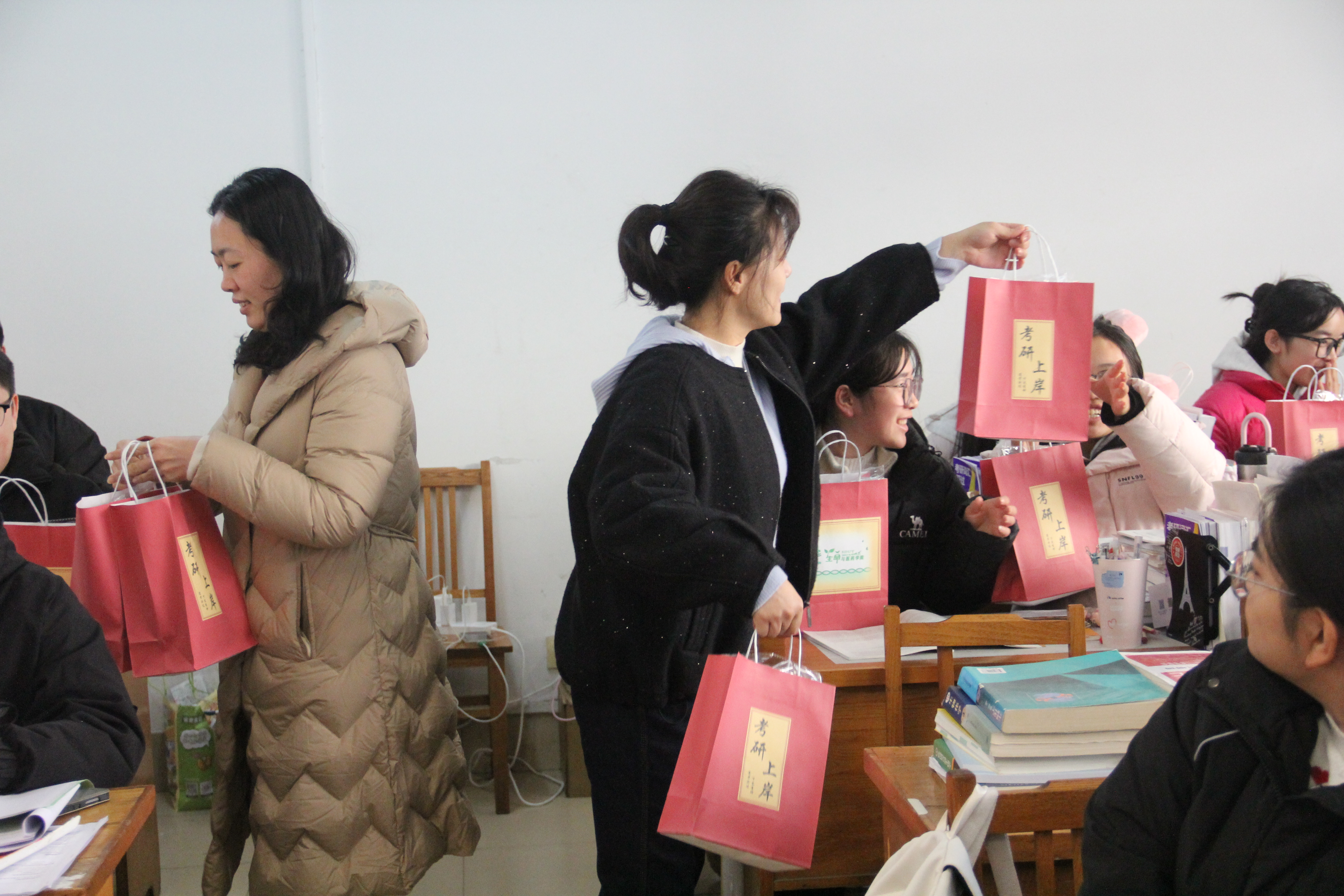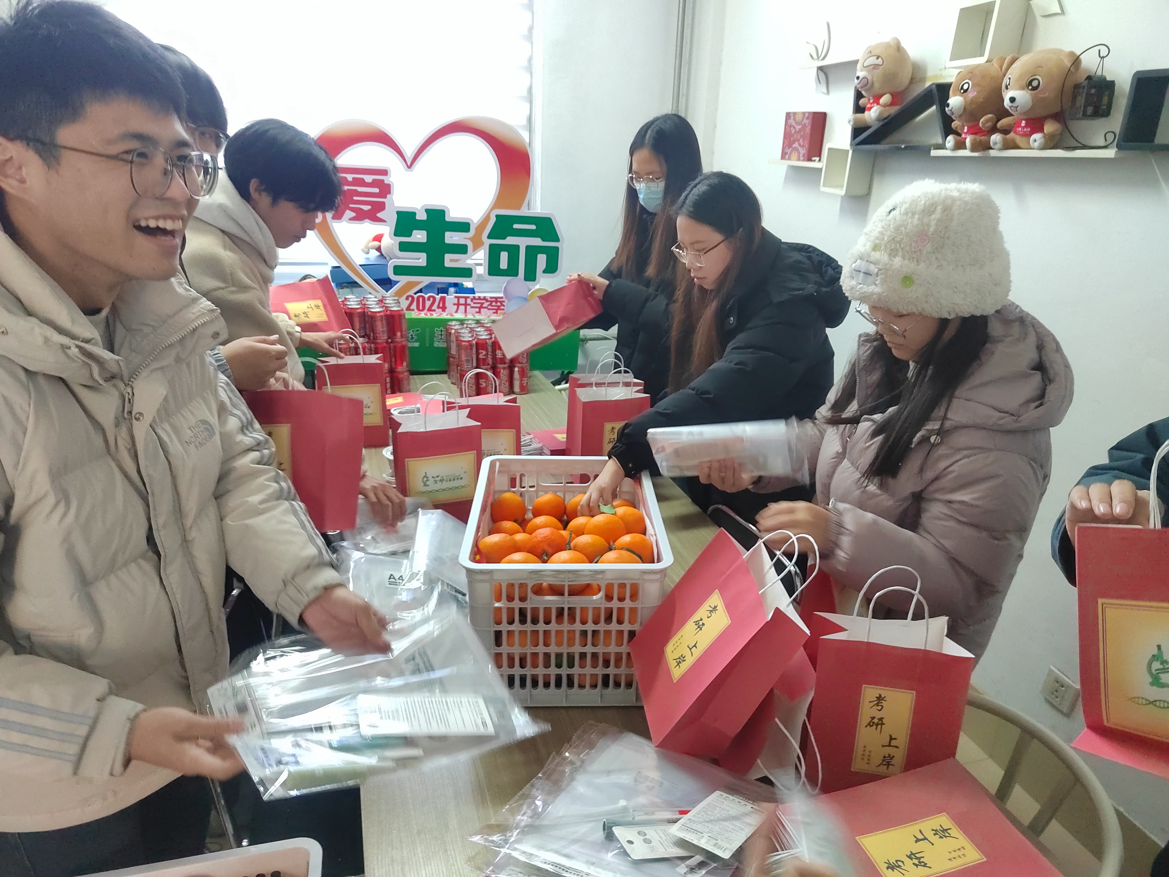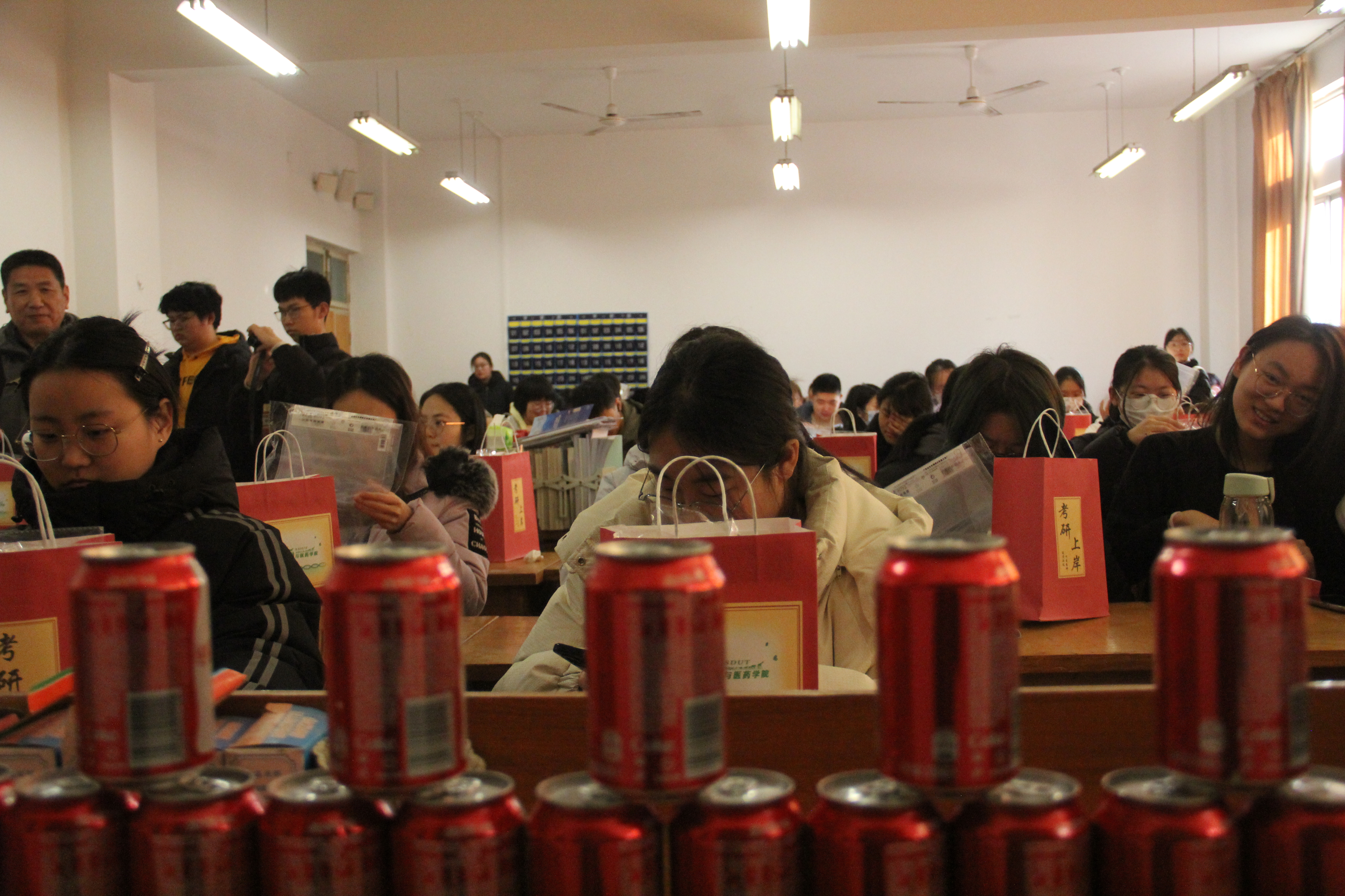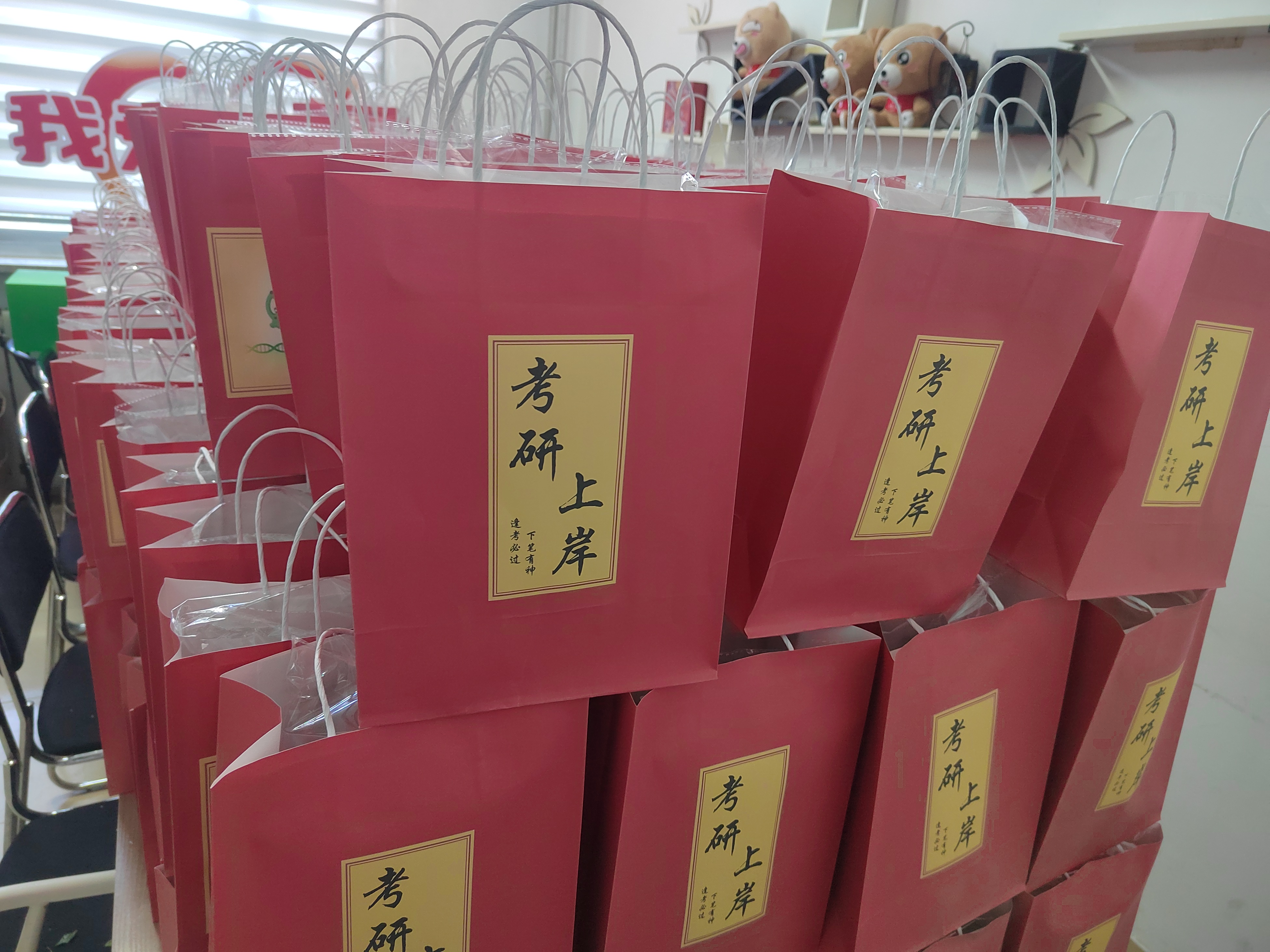 据悉,考研礼包除文具袋等学习必需品外,橙子、可乐等更是承载全院师生美好期盼。