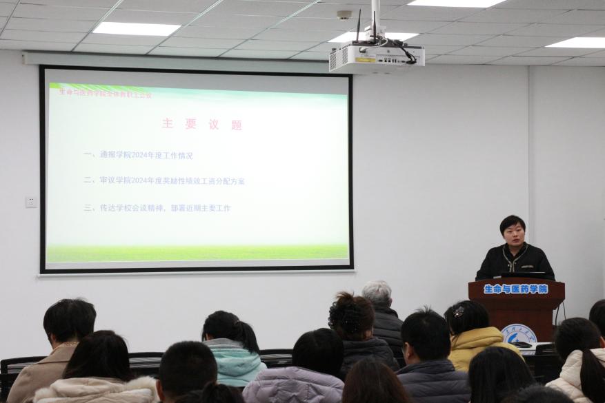 1月10日下午,公司在13号教学楼215报告厅召开全体教职工大会,传达公司会议精神,通报公司2024年度工作情况,审议2024年度奖励性绩效工资分配方案,就寒假及近期重点工作作安排部署。党委书记王光坊主持会议。