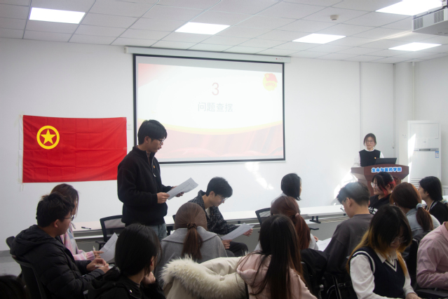 会议伊始,吴晓菲简要通报了会议主题及内容,代表支部对老师们现场指导表示欢迎。在核查到会团员人数符合开会要求的前提下,带领大家重温了习近平总书记对广大团员青年争做“五个模范,五个带头”的殷殷嘱托,着重就《共青团员纪律处分条例(试行)》有关内容进行了学习,通报了团支部委员会纪律建设情况以及团支部在团员和青年主题教育专题组织生活会查摆问题的改进落实情况。随后,吴晓菲带头逐一对照习近平总书记对新时代共青团员提出的“做崇德向善、严守纪律的模范,带头明大德、守公德、严私德,严格遵纪守法,严格履行团员义务”重要要求、团的纪律和团员义务以及团员先进性作用发挥等三个方面进行个人问题查摆并听取他人批评意见。