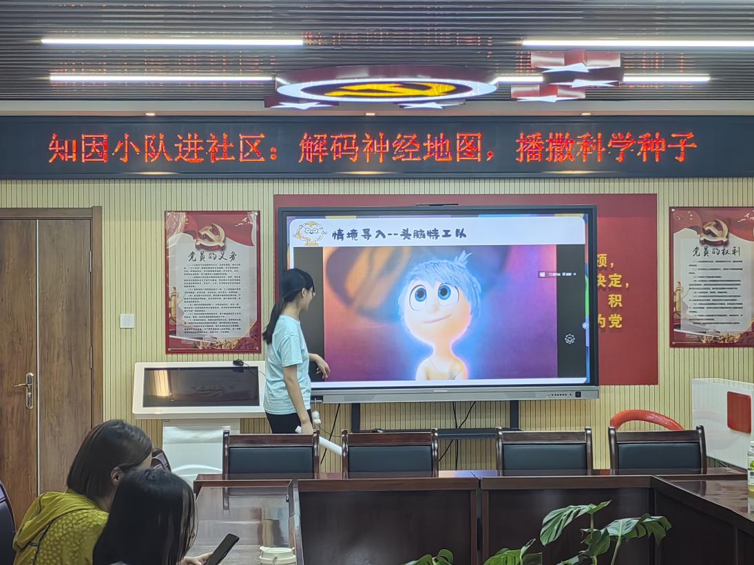 活动中,实践团队长王新蕊以《头脑特工队》动画角色为切入点,为小朋友们讲解了神经系统的组成和功能。通过“乐乐”“忧忧”“怕怕”“厌厌”和“怒怒”等角色,形象地介绍了大脑、小脑、脑干、脊髓和神经的作用。例如,“厌厌”对应脑干,负责调控心跳、呼吸等生命活动;“乐乐”对应大脑皮层,主导高级认知和情绪调控。讲解过程中,小朋友们积极参与互动问答,现场气氛热烈。