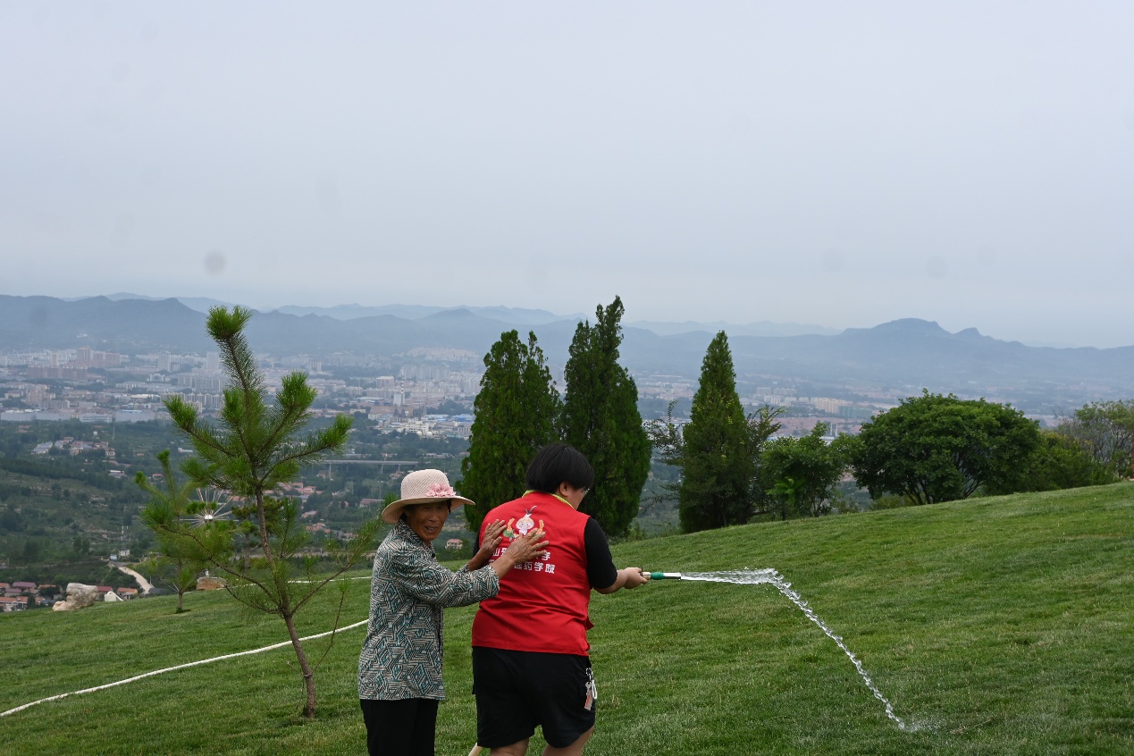 行至蜿蜒的石板曲径,实践团与一位躬身于草甸间的养护员不期而遇。攀谈间得知,这片如茵绿草是望山生态环境的“门面担当”—空中草原,葱郁草地离不开专人每日的浇水养护。工作人员还特别提到,此处开阔、平整的草甸,因其新鲜空气与优美环境,已成为周边多所中学开展踏青和实践活动的首选之地。