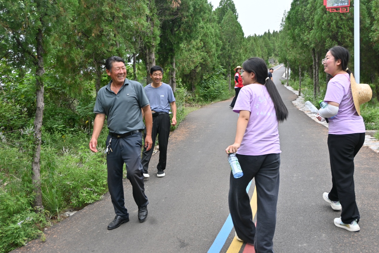 实践团参观途中遇到攀顶返途的游客,在与他们的交谈中了解到,望山文旅立足生态优势,建设汽车露营地、儿童游乐广场等特色景观,这些项目不仅成为网红打卡地,更形成强力辐射效应--有效带动周边餐饮民宿、特色零售等配套产业协同发展。通过系统整合生态观光、文化体验与社区资源,这里已跃升为区域文旅融合新地标,打造出南麻街道文旅融合新名片。