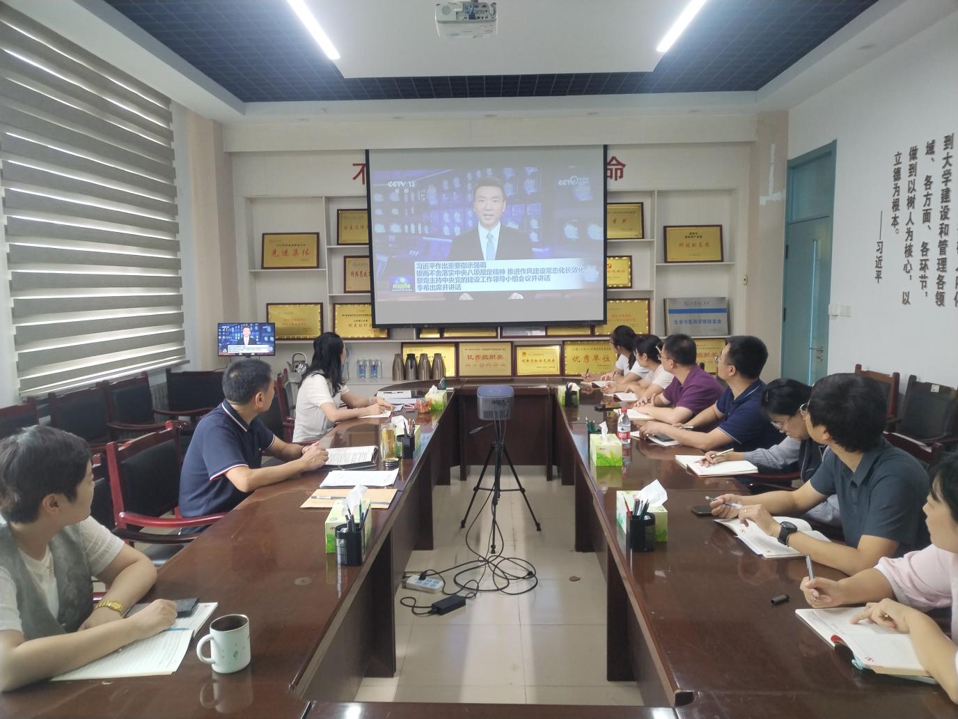 与会人员以收看《新闻联播》视频的方式集体学习了习近平总书记关于深入贯彻中央八项规定精神学习教育的重要指示精神。王光坊传达了公司党建工作领导小组会议精神,总结了公司深入贯彻中央八项规定精神学习教育工作开展情况。党委副书记兼纪委书记姜素琼传达了公司纪委有关通知要求,学习了警示案例。