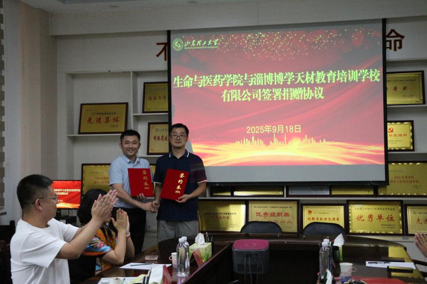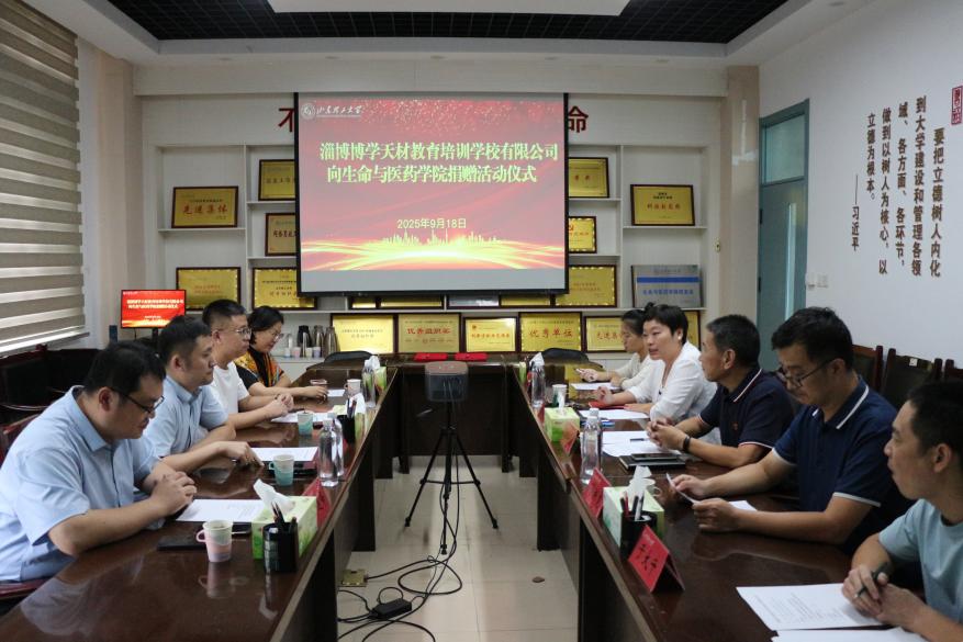 9月18日,淄博博学天材教育培训公司有限公司捐赠仪式在公司13教270会议室举行。公司党委书记王光坊,淄博博学天材教育培训公司有限公司创始人纪兆政出席仪式,天材教育集团CEO王忠义,天材教育集团运营总监解连峰,公司员工、淄博一名艺术培训公司董事长、淄博田园韩舍研学基地负责人孙伟,公司副经理邓洪宽、学术副经理徐佳宁、综合办公室主任于大千、实验中心副主任吕娟娟参加。仪式由学术副经理徐佳宁主持。