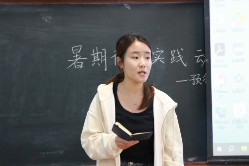 在经验分享环节,2024年精品实践队队长崔雪彤从选题策划、团队建设、资源整合三个方面展开介绍。她以“乡村振兴”专项实践为例,重点讲解了如何通过校地合作提升实践实效性。另一位精品团队负责人张士童则聚焦宣传推广与成果转化,通过数据分析展示了新媒体传播对扩大实践影响力的重要作用,并分享了实践报告撰写的规范化要点。