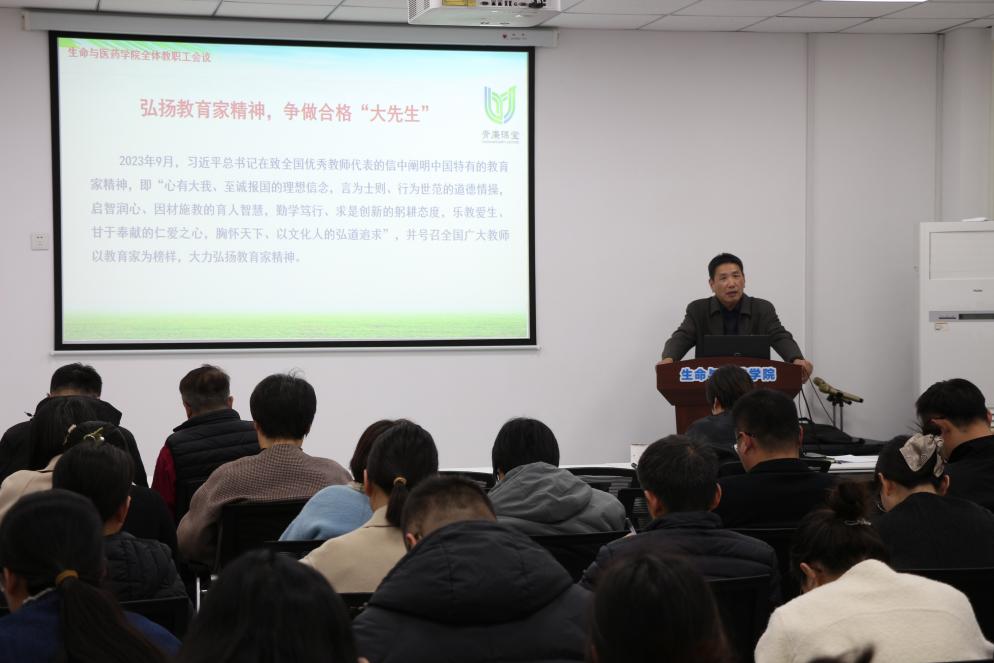 会上,还集体学习了习近平总书记给中国农业大学、中国海洋大学、特岗教师以及全国优秀教师代表的致回信精神,要求全体教工谨遵总书记殷切嘱托,勇担为党育人、为国育才的神圣使命,以良好的师德师风和育人成效积极弘扬教育家精神,争做合格“大先生”。会上,结合教育部公开的近期有违师德师风的具体案例,开展了师德师风警示教育,警醒大家要恪守教师本分,自觉涵养师德,主动营造风清气正的育人环境。