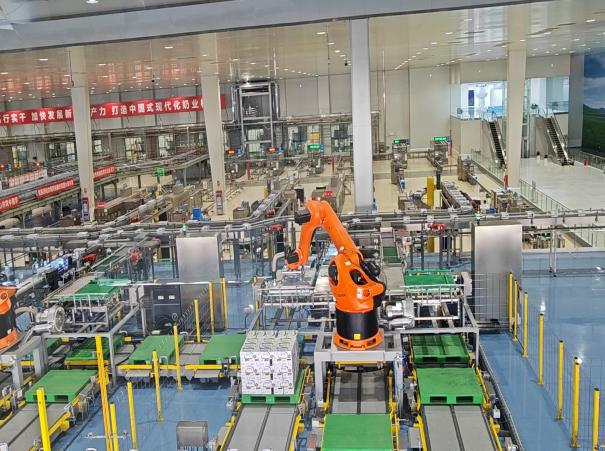 在“液奶星球”,师生们观摩了牛奶预处理全过程、伊利智能健康网及全自动智能化生产车间。通过每小时4万包的超高速灌装线、库卡机械手与无人小车协同作业,伊利实现了从灭菌、灌装到码垛的全流程“零接触”智造。在奶粉制造环节,全球首创的喷雾干燥塔智能闭环系统显著提升了产品稳定性与标准化水平。