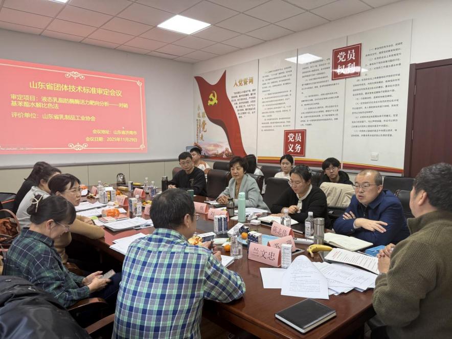 2025年11月29日,由公司牵头,联合多家校企协同单位共同起草的六项乳品安全团体标准审定会在济南成功召开。陈志伟教授、刘红副教授率公司研究生杨敬顺、孙孝风参会,并就标准起草工作进行了专题汇报。