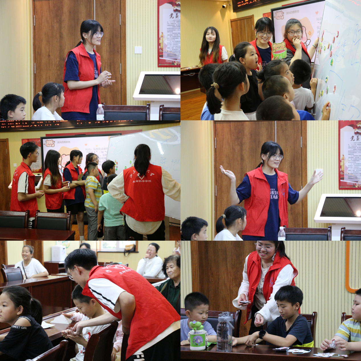 随后,同学们将参加儿童分为两组,以组为单位进行头脑风暴游戏。同学们在黑板上绘出了简化的生态系统,用磁贴标注动物。参加儿童需要选择破坏生态系统中的某项元素,并说出破坏后生态系统其他元素的变化。儿童们奇特而灵活的想法也为志愿者同学们带来了启发。