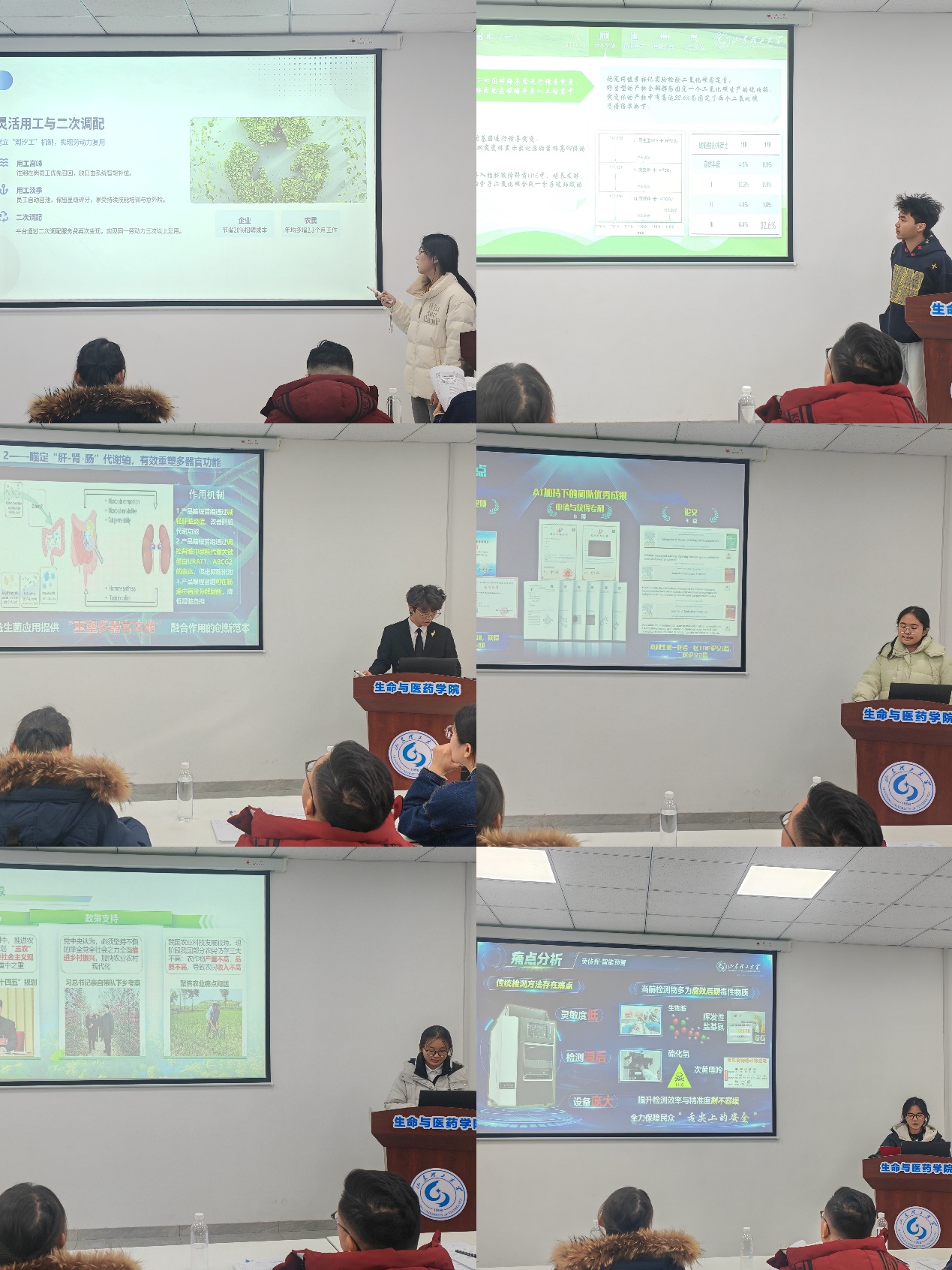 比赛伊始,姜书记介绍了本次答辩规则与评分标准,答辩延续“5分钟项目汇报+3分钟评委问答”的经典形式,重点考察项目创新性、落地可行性与社会价值。各团队答辩人紧扣“青春为中国式现代化挺膺担当”的赛事主题,围绕科技创新和未来产业、生态文明建设、社会治理和公共服务等重点领域,通过PPT生动呈现项目的核心技术、商业模式、市场前景及成果转化规划,部分团队还展示了人工智能融合应用等前沿创新点,充分体现了跨学科协作优势与青年担当。