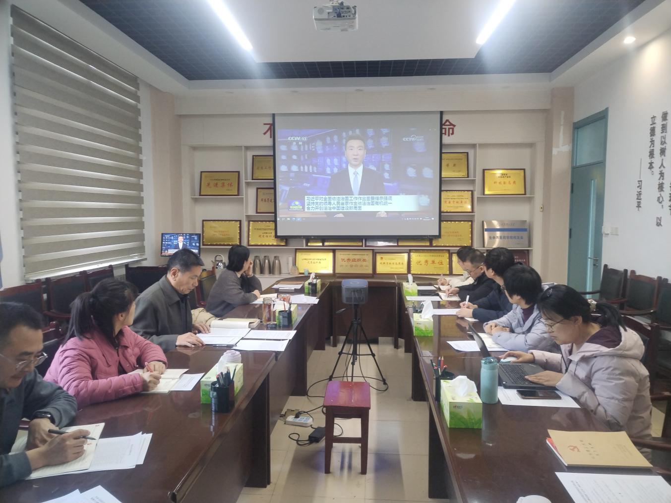 与会人员以收看《新闻联播》视频的方式,集体学习了习近平总书记关于对全面依法治国工作作出的重要指示和中央全面依法治国工作会议精神。党委副书记兼纪委书记姜素琼传达学习了公司党委《关于深入学习宣传贯彻党的二十届四中全会精神的通知》,王光坊传达学习了公司2025年秋季学期党委教师工作委员会扩大会议精神、《谈球吧网页版登录入口教师师德考核办法》和《意识形态工作责任制实施办法》。