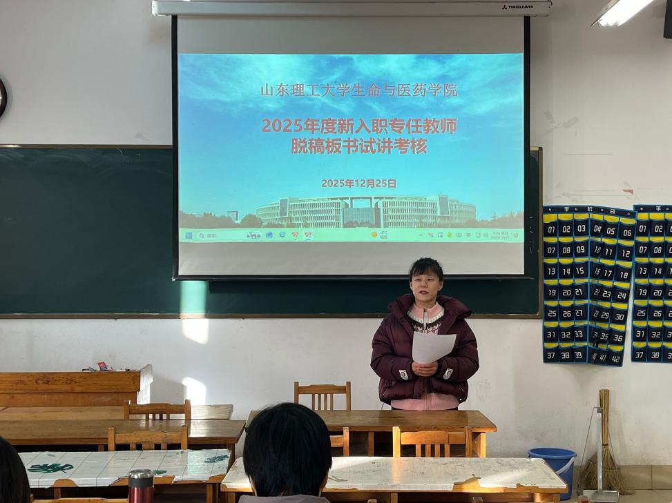 为检验新入职教师第一阶段培训学习及助教工作成效,助力新教师扎实教学基本功、提升课堂教学质量,公司于12月25日上午在13号教学楼201教室组织了2025年度新入职专任教师脱稿板书试讲考核。公司领导、教学督导组成员、优秀教师代表组成考核专家组,公司近三年新入职青年教师到场观摩学习,会议由副经理赵倩主持。