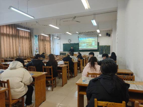 1225日上午,科兴制药公司专场招聘活动在13201室顺利举行,科兴制药人力资源负责人王晓鑫、校园招聘经理王常江应邀来访。毕业班辅导员翟静涛主持,2022级部分员工参加。