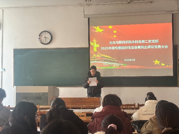 3月12日下午,公司本科生第二党支部在13号教学楼201召开2025年度组织生活会暨民主评议党员大会,党委副书记姜素琼出席。会议由党支部书记翟静涛同志主持。
