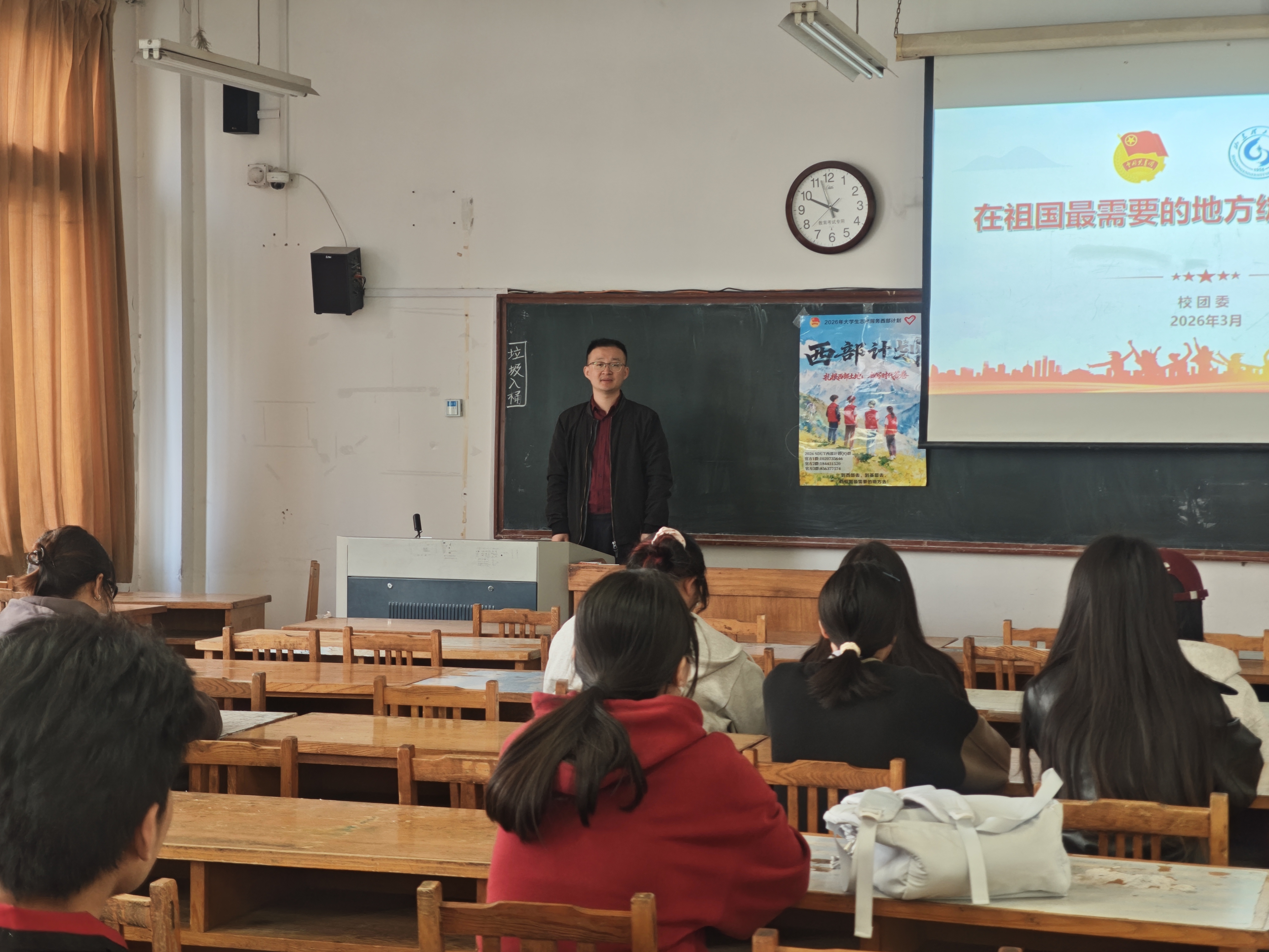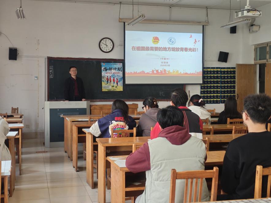 3月25日,公司在13号教学楼206室开展“西部计划”专题宣讲活动,辅导员翟静涛担任主讲。部分2022级毕业生参加活动。