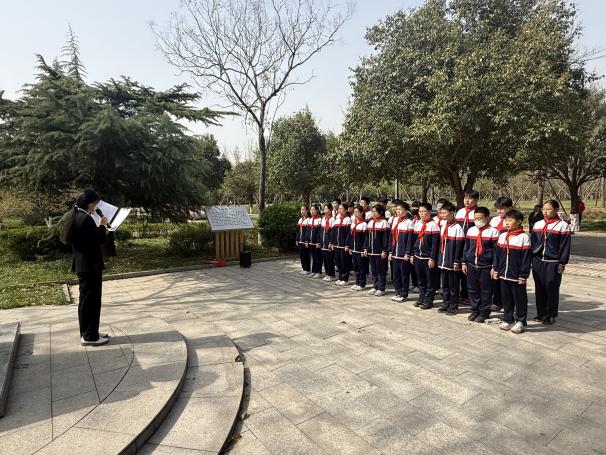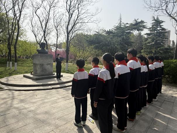 上午9时30分,活动在冯思广纪念广场正式开始。春日的校园松柏苍翠,冯思广烈士的纪念雕塑在晨光中显得格外庄严肃穆。全体同学身着整齐校服,在纪念广场前列队肃立。