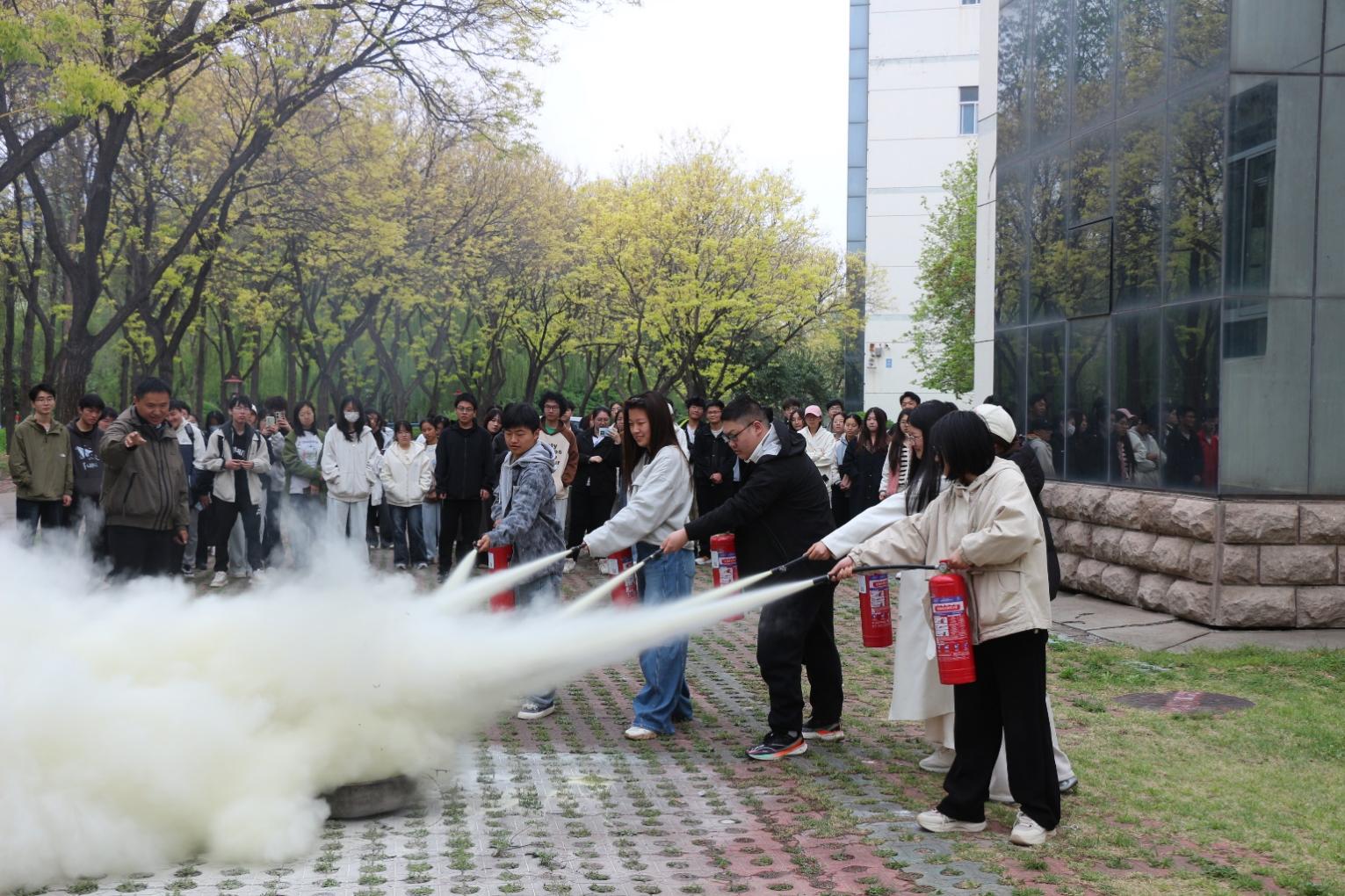 左敏带领全体参训人员前往室外安全区域,开展灭火器实操教学。左老师现场示范灭火器“提、拔、握、压”标准操作流程,详细讲解使用要点与注意事项。在老师指导下,多名同学主动上手实操,手持灭火器对准火源根部进行喷射,成功完成灭火操作,切实掌握灭火器正确使用方法,将理论知识转化为实战技能。