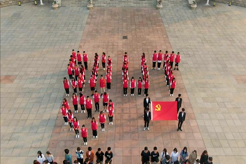清晨6时30分许,公司师生早已在广场前集合完毕,身穿红色马甲的志愿者队列摆出的“SDUT”图案格外引人注目。