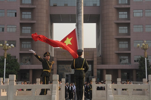 仪式最后,全体师生同唱歌曲《红旗飘飘》。“五星红旗,你是我的骄傲;五星红旗,我为你自豪。”激昂的旋律下,催人奋进的歌声,唱出了无数国人源自心底的自信与骄傲,抒发了全体师生热爱伟大祖国的赤子情怀和报效国家的坚强决心。